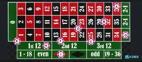 - 直线押注(Column Bet):下注在三列之一,如果小球落在该列中的任何一个数字,回报为2:1。